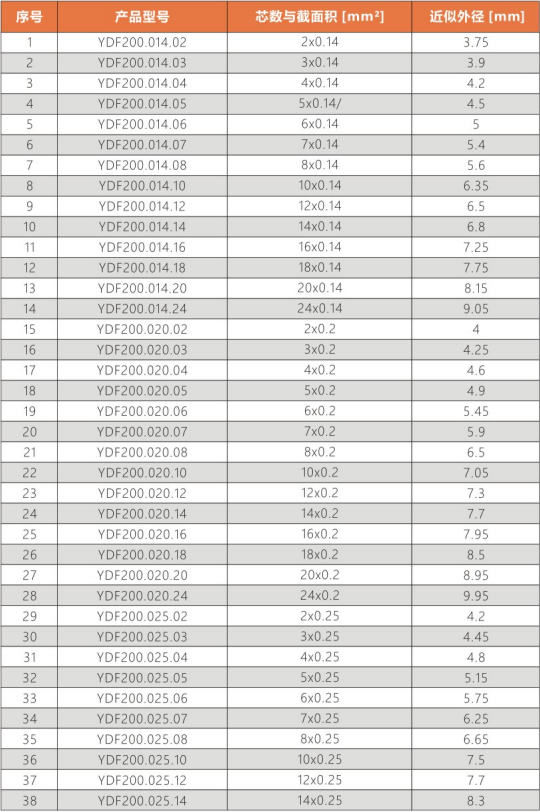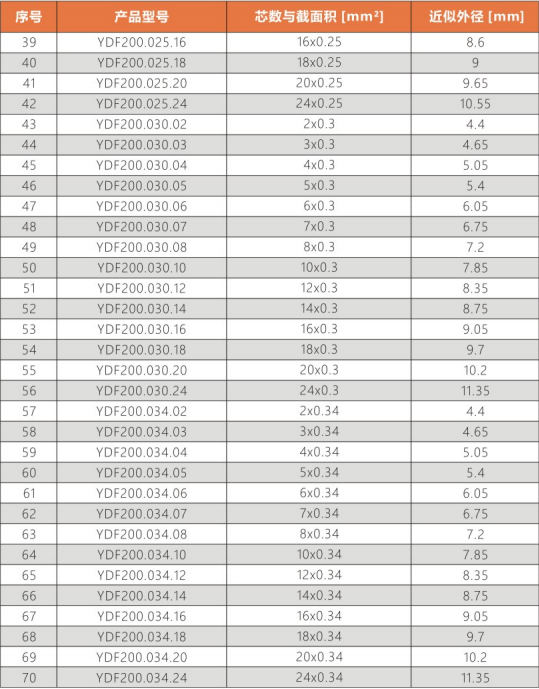 彎曲半徑                :     非拖鏈內(nèi)運(yùn)動(dòng):10.0X電纜外徑