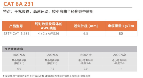 彎曲半徑 : 非拖鏈內(nèi)運動:5.0X電纜外徑